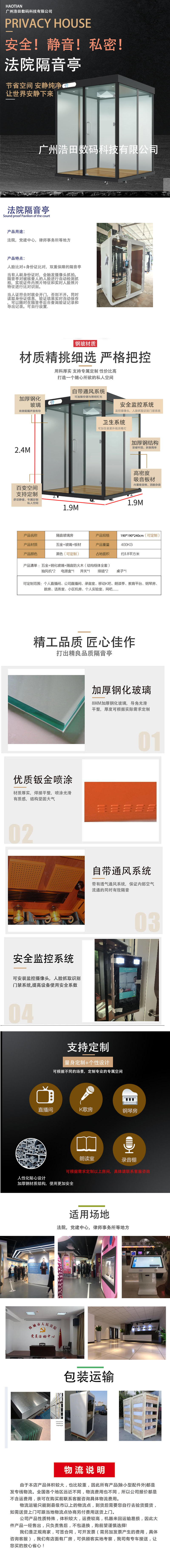 產品特點:法院隔音亭,人臉比對+身份證比對,雙重保障的隔音亭,當有人刷身份證時,會觸發攝像頭抓拍。隔音亭對被核查人的人臉進行自動檢測抓拍,實現證件內照片特征和實時人臉照片特征進行比對識別。