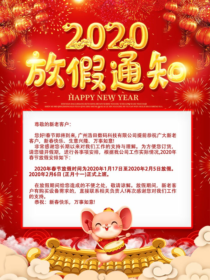 您現(xiàn)在的位置:首頁(yè) ? 浩田資訊 ? 浩田動(dòng)態(tài)廣州浩田2020新年放假通知