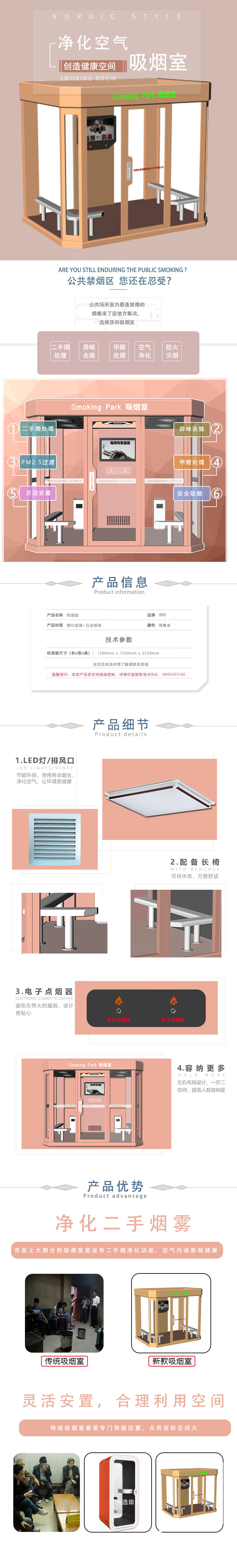 產品特點:大型商場設立綠色、環保、便捷的吸煙室和相關設施是倡導文明吸煙行為,保障公眾健康權益,構建吸煙者與非吸煙者和諧共處的氛圍的重要“橋梁”,更好地引導約束煙民的吸煙行為,也是促進和解決公共場所控煙的重要舉措!
